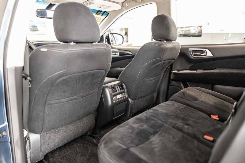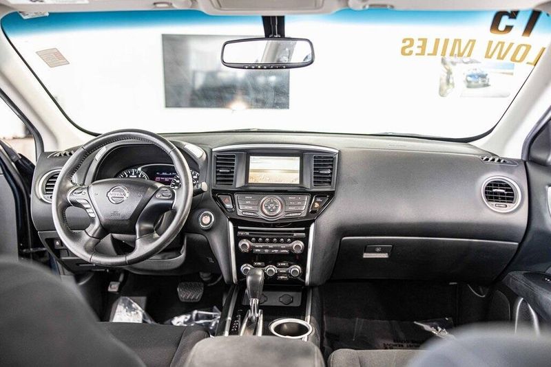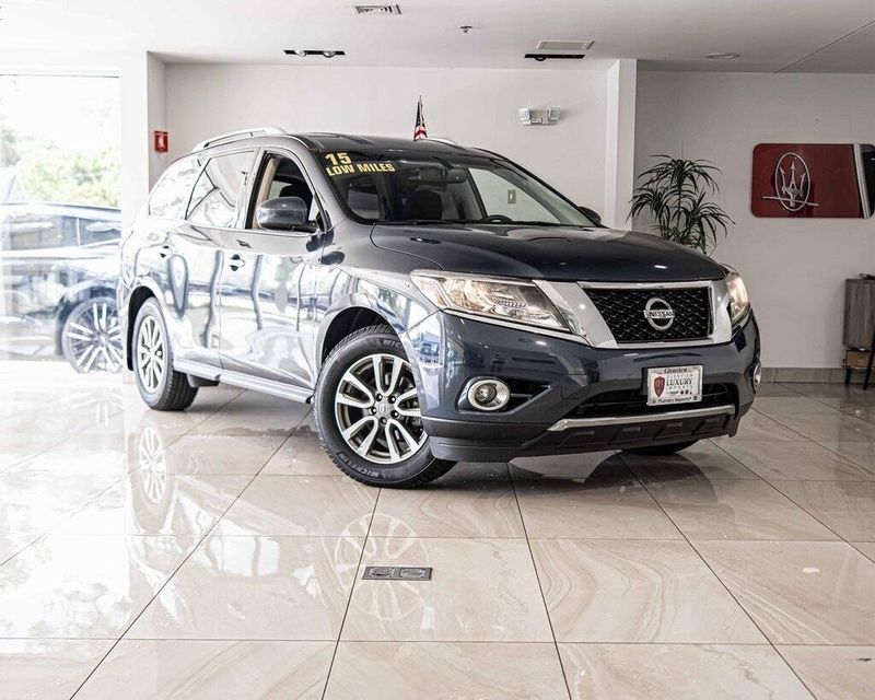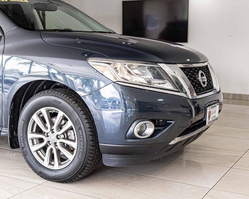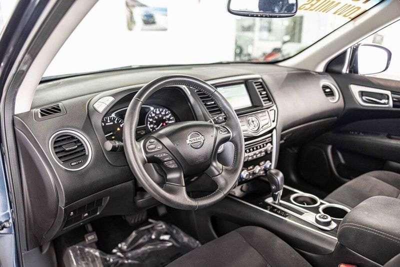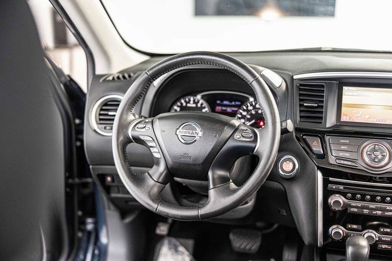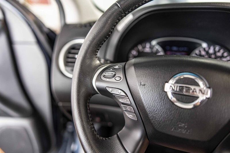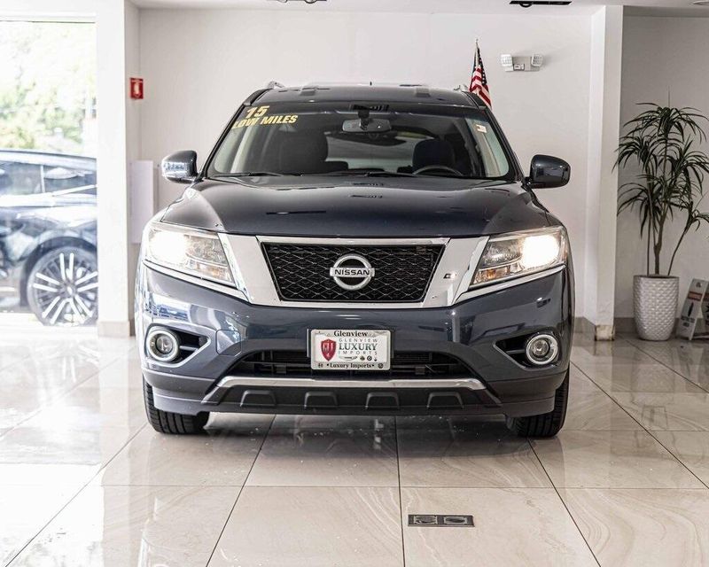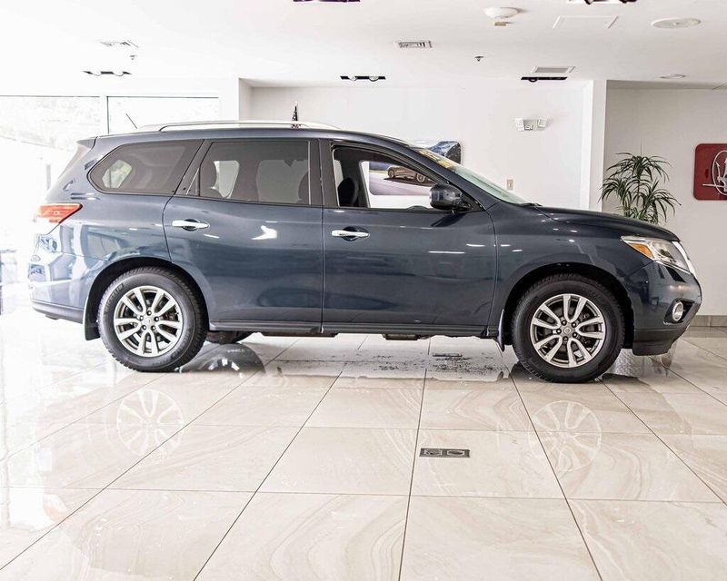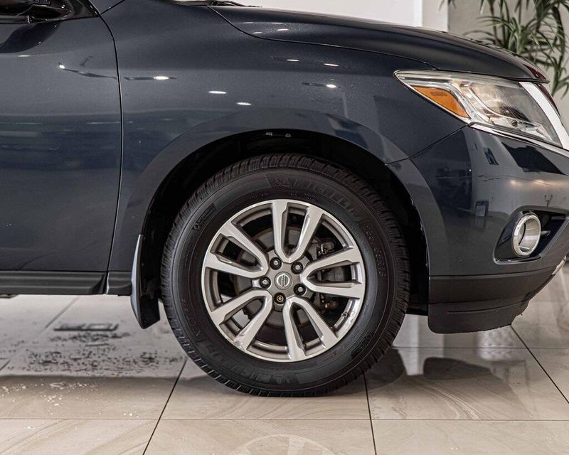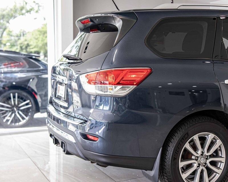 2015 Nissan Pathfinder SV 4WD 3.5L V6 Arctic Blue Metallic Clean CARFAX, AWD, Navigation, Sunroof, 4WD, 4-Wheel Disc Brakes, ABS brakes, Cloth Seat Trim, Driver door bin, Dual front impact airbags, Dual front side impact airbags, Front anti-roll bar, Front reading lights. Odometer is 49195 miles below market average! 19/26 City/Highway MPG