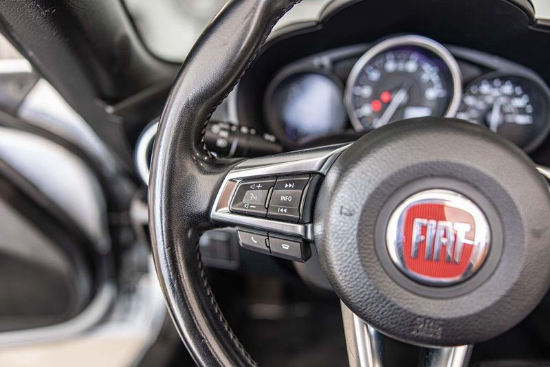 2018 Fiat 124 Spider Lusso RWD 1.4L I4 16V MultiAir Turbocharged Chiaro Silver Metallic Navigation, Sunroof, Leather Seats, Heated Seats, Backup Camera, Memory Seats, Cooled Seats, Premium Sound System, 6 Speakers, AM/FM radio: SiriusXM, Auto-Dimming Exterior Mirrors, Blind Spot & Cross Path Detection, Convenience Group, Convertible roof wind blocker, Four wheel independent suspension, Glass rear window, Heated Exterior Mirrors, ParkSense Rear Park Assist System, Quick Order Package 22S, Radio: AM/FM Bluetooth w/7'' Display, Rear View Auto Dim Interior Mirror, Security Alarm, Speed-sensing steering, Tachometer, Traction control, Universal Garage Door Opener, Wheels: 17'' x 7'' Premium Silver Aluminum. Recent Arrival! 25/36 City/Highway MPG
