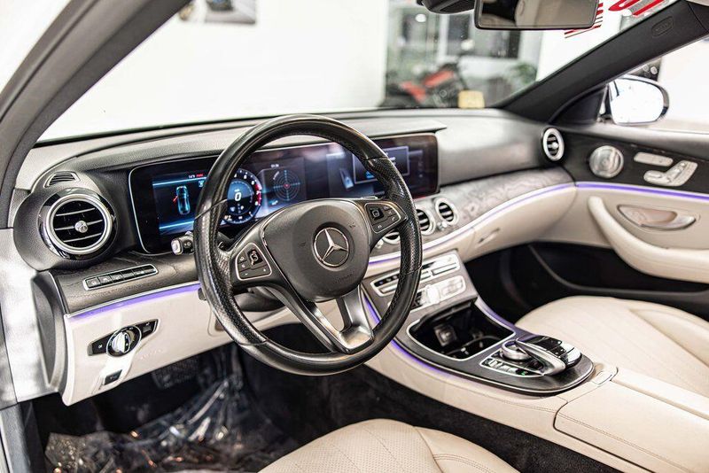 2018 Mercedes-Benz E-Class E 400 4MATIC 4MATIC 3.0L V6 BiTurbo Polar White AWD, Navigation, Sunroof, Leather Seats, Heated Seats, Backup Camera, Memory Seats, 4MATIC, 115V AC Power Outlet, 12.3'' Widescreen Instrument Cluster, Active Parking Assist, Adaptive Highbeam Assist, AIR BALANCE Package, AMG Bodystyling, AMG Line Exterior, Black Ash Wood Trim, Black Headliner, Blind Spot Assist, Burmester Surround Sound System, Center Console in Natural Grain Black Ash Wood, Corner-Illuminating Lamps, DISTRONIC PLUS w/PRESAFE Brake, DISTRONIC PLUS w/Steering Assist, Driver Assistance Package Plus, Electronic Trunk Closer, Extended Restart by Stop and Go Traffic, Full LED Headlamps, HANDS-FREE ACCESS, Head-Up Display, Heated Front Seats, Inductive Wireless Charging w/NFC Pairing, KEYLESS GO, KEYLESS GO Comfort Package, Lighting Package, Navigation System, Navigation system: COMAND APS, Panorama Sunroof, Parking Pilot w/Surround View System, Perforated Front Brake Discs, Power Rear-Window Shade, Premium 3 Package, Premium 3 Package (Q03), Rear Seat Entertainment and Comfort Adapter, SiriusXM Satellite Radio, Speed Limit Assist, Speed Limit Pilot, Surround View Camera System, Wheels: 18'' Twin 5-Spoke. 20/27 City/Highway MPG
