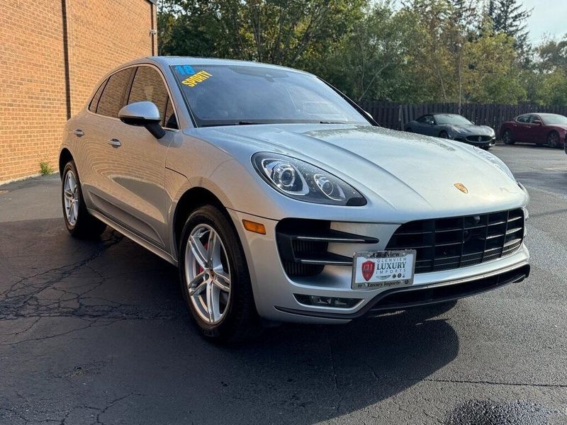 2018 Porsche Macan Turbo AWD 3.6L V6 Rhodium Silver Metallic One Owner, Clean CARFAX, AWD, Navigation, Sunroof, Leather Seats, Heated Seats, Backup Camera, Memory Seats, Cooled Seats, Premium Sound System, Premium Audio, Multi-Zone Climate Control, Bluetooth, Hands-Free, USB Port, Portable Audio Connection, Steering Wheel Controls, 14-Way Power Seats, Automatically Dimming Exterior Mirrors, Automatically Dimming Interior Mirrors, Front & Rear Heated Seats, Front Seat Ventilation, Heat & Noise-Insulating Glass, Heated front seats, Lane Change Assist (LCA) & Lane Keeping Assist, Memory Pkg, Navigation System, Panoramic Roof System, Porsche Active Suspension Management System, Porsche Entry & Drive, Power Liftgate, Premium Package Plus, Smoker Package, Sport Chrono Package, Sport steering wheel, Wheels: 19'' Macan Turbo. Recent Arrival! Odometer is 6180 miles below market average!