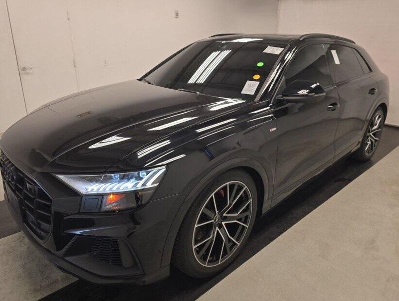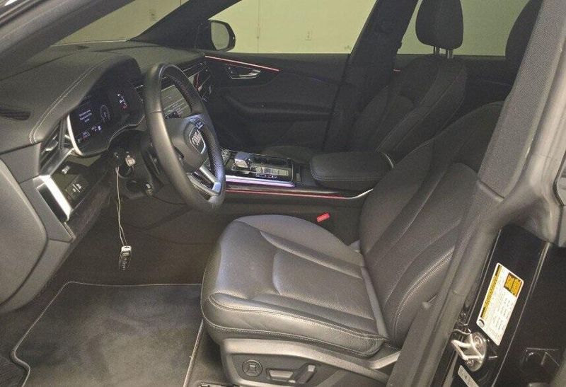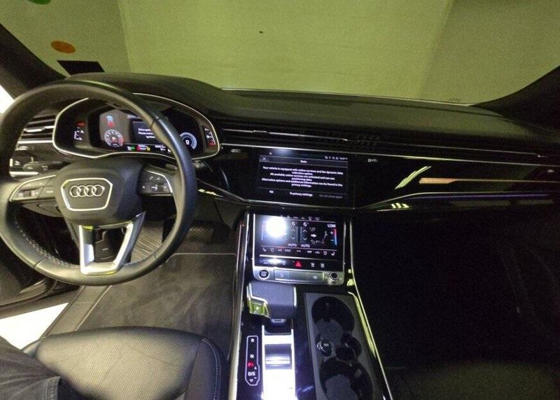 2021 Audi Q8 55 Prestige quattro quattro 3.0L V6 Turbocharged DOHC 24V LEV3-ULEV70 335hp Orca Black Metallic One Owner, Clean CARFAX, AWD, Navigation, Sunroof, Leather Seats, Heated Seats, Backup Camera, Memory Seats, 4-Wheel-Steering, 4-Zone Climate Control, Adaptive Air Suspension, Adaptive Chassis Package, Audi Active Lane Departure Warning, Audi Adaptive Cruise Assist, Audi Phone Box w/Wireless Charging, Bang & Olufsen 3D Advanced Sound System, Bang & Olufsen 3D Premium Sound System, Contour/Ambient LED Interior Lighting Package, Convenience Package, Driver & Passenger Front Seats w/Ventilation, Electric Sun Blinds for Rear Side Windows, Executive Package, HD Matrix-Design LED Headlights, Head-Up Display, Headlight Washers, Heated 3-Spoke Multifunction Steering Wheel, Heated Auto-Dimming Power Folding Exterior Mirrors, Heated Rear Seats, Illuminated Door Sills, Intersection Assist, LED DRL & Taillights, Navigation System, Navigation system: Audi MMI Navigation plus with Touch Response, Power moonroof, Power Soft-Closing Doors, Prestige Package, S line Fender Badges, S line Front & Rear Bumpers, S line Illuminated Door Sills, S line Side Sills, S line Style Package, S-Line Exterior Package, Top View Camera System, Traffic Sign Recognition, Upper Dashboard in Leather w/Contrast Stitching, Wheels: 22'' Audi Sport 5-V-Spoke Star Design.