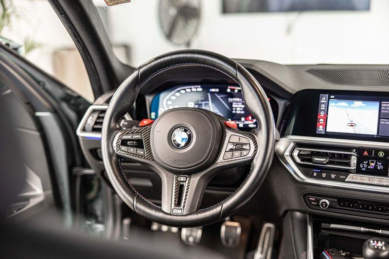 2021 BMW M3 Base RWD 3.0L I6 Turbocharged DOHC 24V LEV3-ULEV70 473hp Isle of Man Green Metallic One Owner, Clean CARFAX, Navigation, Sunroof, Leather Seats, Heated Seats, Backup Camera, Memory Seats, Cooled Seats, Premium Sound System, Premium Audio, Multi-Zone Climate Control, Bluetooth, Hands-Free, USB Port, Portable Audio Connection, Apple CarPlay/Android Auto, Steering Wheel Controls, Carbon Fiber Trim, Drive Recorder, Executive Package, Gesture Control, Head-Up Display, Heated Steering Wheel, Icon Adaptive LED Headlights w/Laserlight, M Compound Brakes w/Black Calipers, Navigation System, Parking Assistance Package, Parking Assistant Plus, Power Tailgate, WiFi Hotspot, Wireless Charging. Priced below KBB Fair Purchase Price! Odometer is 13477 miles below market average!