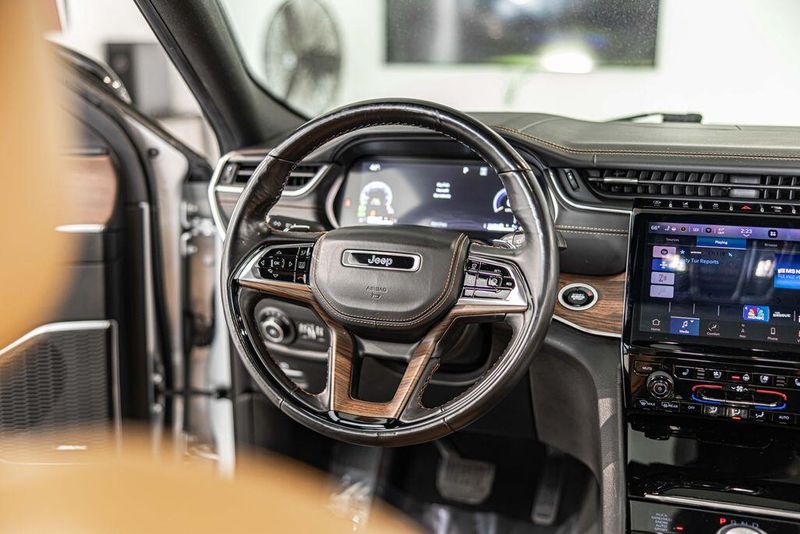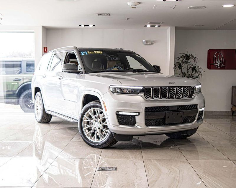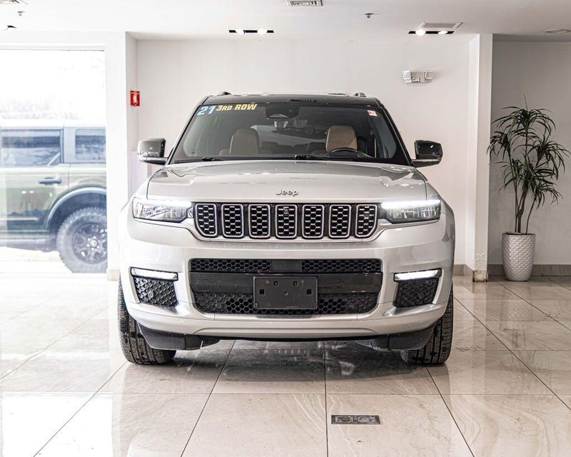 2021 Jeep Grand Cherokee L Summit 4WD 3.6L V6 24V VVT Silver Zynith AWD, Navigation, Sunroof, Leather Seats, Heated Seats, Backup Camera, Memory Seats, Cooled Seats, Premium Sound System, Premium Audio, Multi-Zone Climate Control, 10 Speakers, 2nd Row Manual Window Shades, Advanced Protech Group IV, Heads-Up Display, Interior Rear Facing Camera, Luxury Tech Group V, MOPAR Bright Side Steps, Navigation System, Night Vision/Pedestrian-Animal Detection, Quick Order Package 22S, Rearview Autodim Digital Display Mirror, Two Tone Paint Group, Wireless Charging Pad. Recent Arrival!