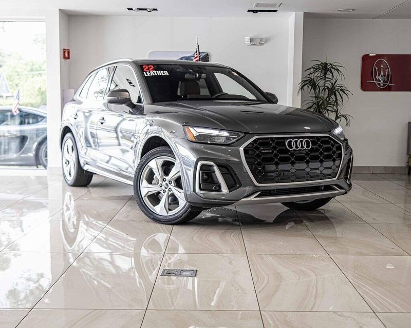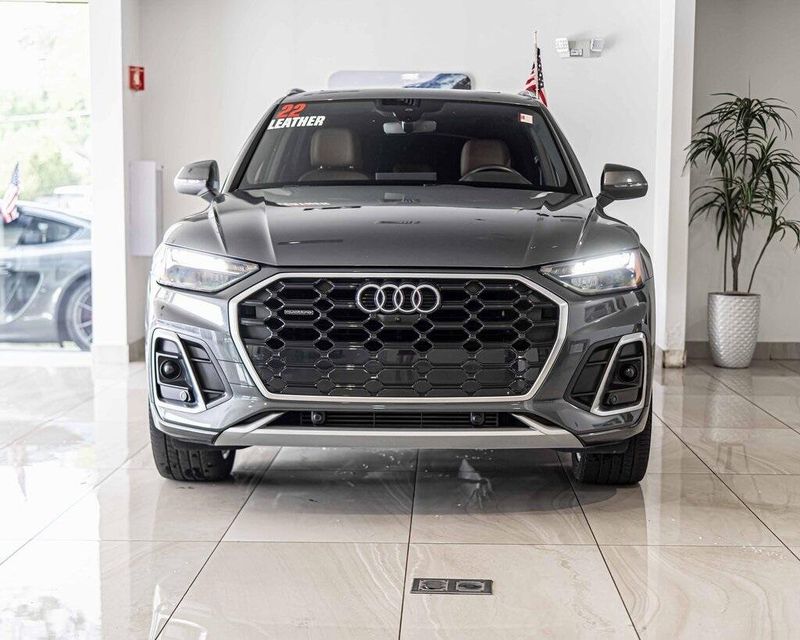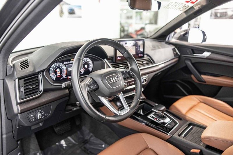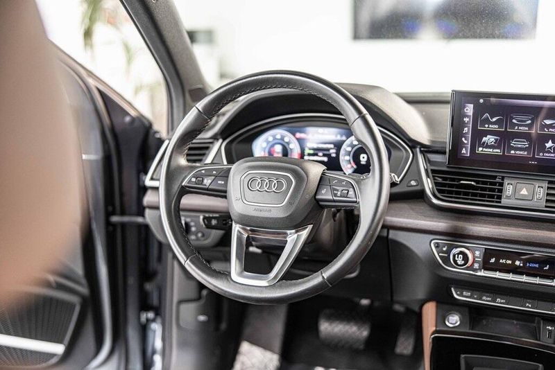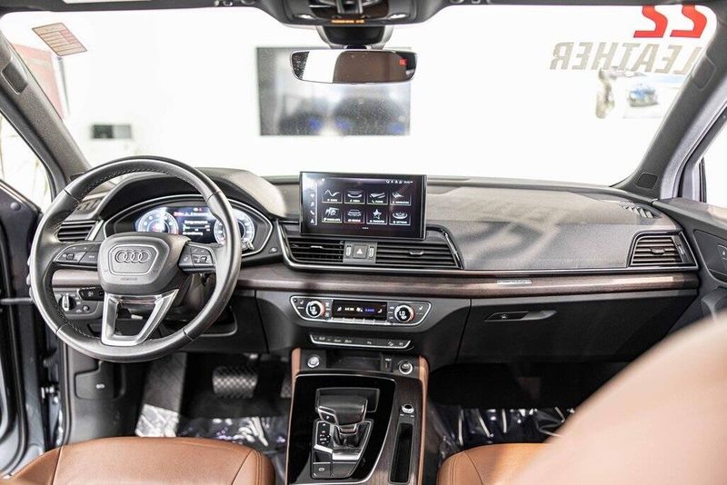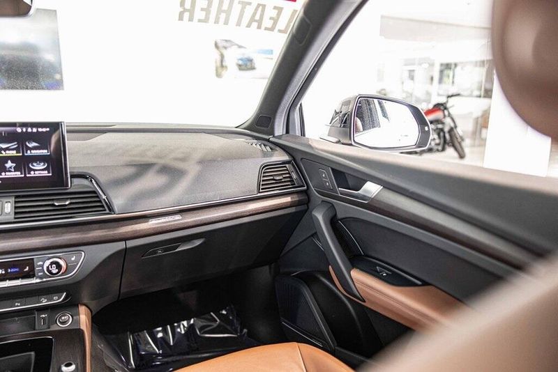 2022 Audi Q5 45 S line Premium quattro quattro 2.0L Turbocharged Daytona Gray Pearl One Owner, AWD, Navigation, Sunroof, Leather Seats, Heated Seats, Backup Camera, Memory Seats, Okapi Brown w/Leather Seating Surfaces, Adaptive Cruise Control w/Traffic Jam Assist, Audi Active Lane Assist, Audi Advanced Key, Audi Connect PRIME & PLUS, Audi Phone Box, Audi Virtual Cockpit Plus, Auto-Dimming Power Folding Exterior Mirrors, Convenience Package, Driver Seat Memory, Hands-On Detection Steering Wheel, Heated Steering Wheel, Leatherette Covered Center Console & Door Armrests, MMI Navigation Plus, Navigation Package, Navigation System, Panoramic Sunroof, Power Adjustable Steering Column, Premium Plus Package, SiriusXM All Access Service, Top View Camera System, Wheels: 19'' 5-Double-Arm Design Bi-Color Finish. Odometer is 14040 miles below market average! 23/28 City/Highway MPG