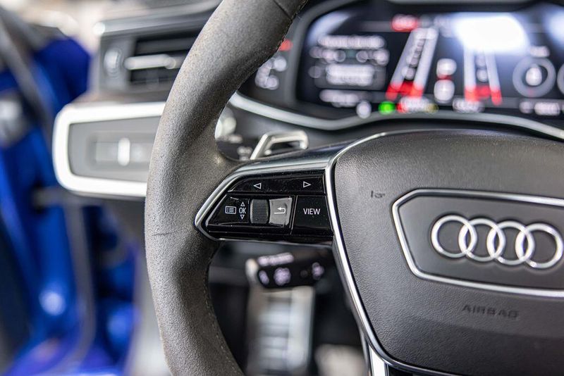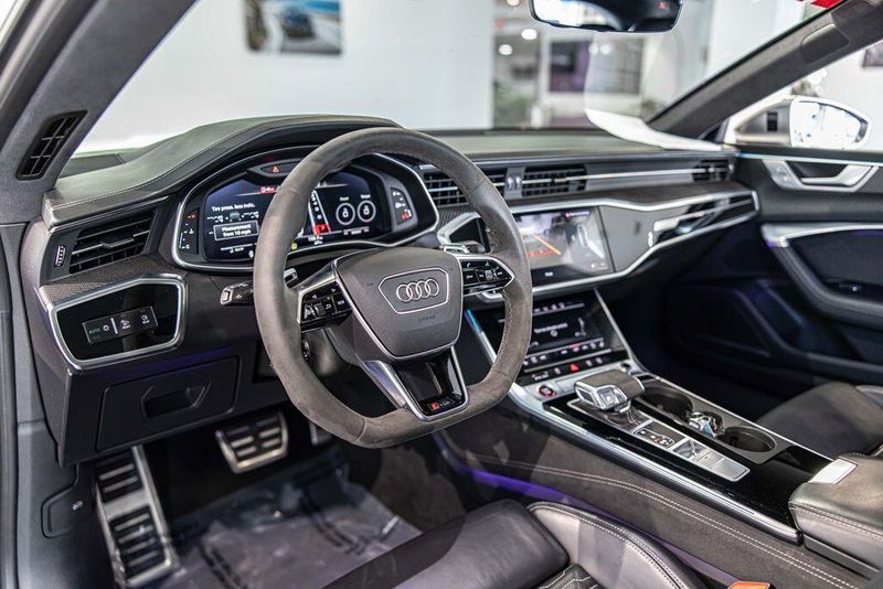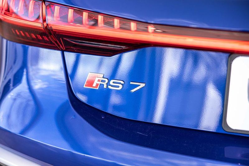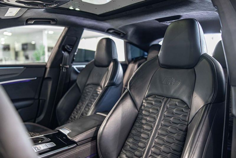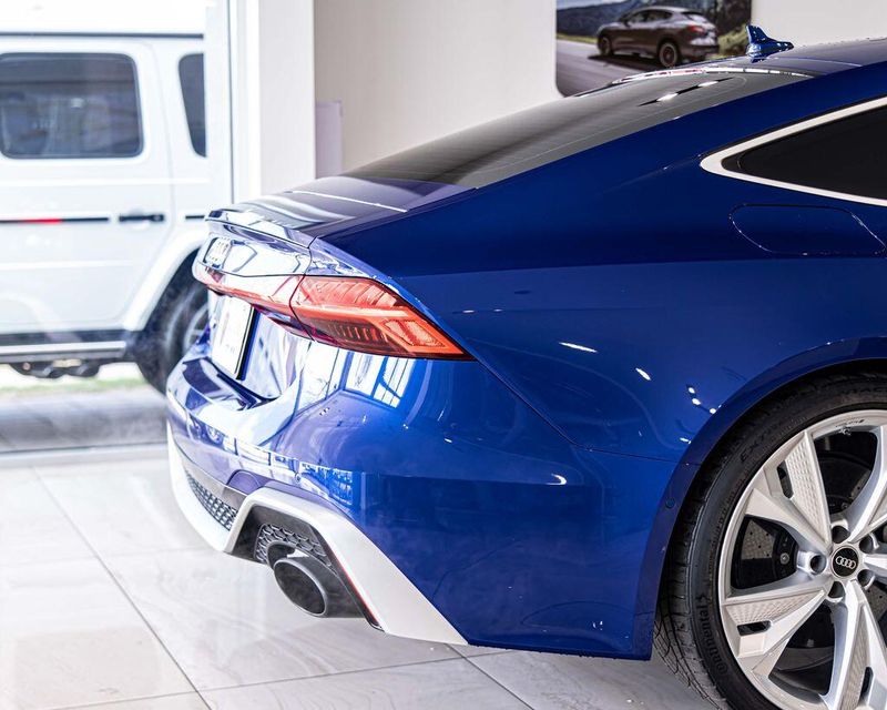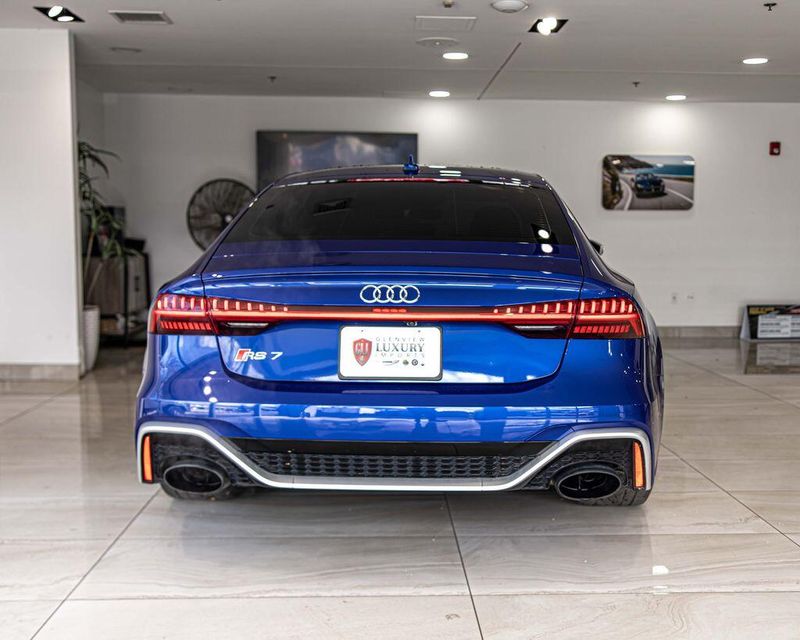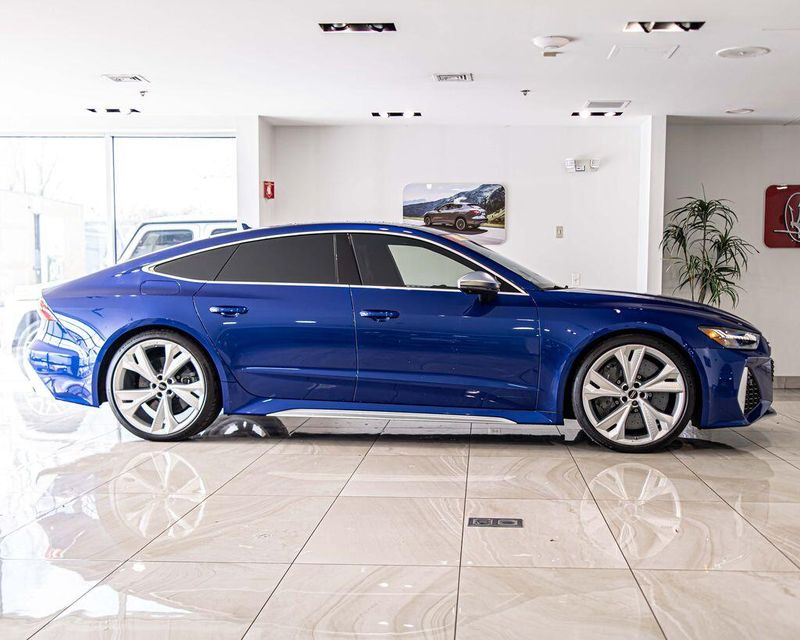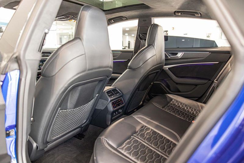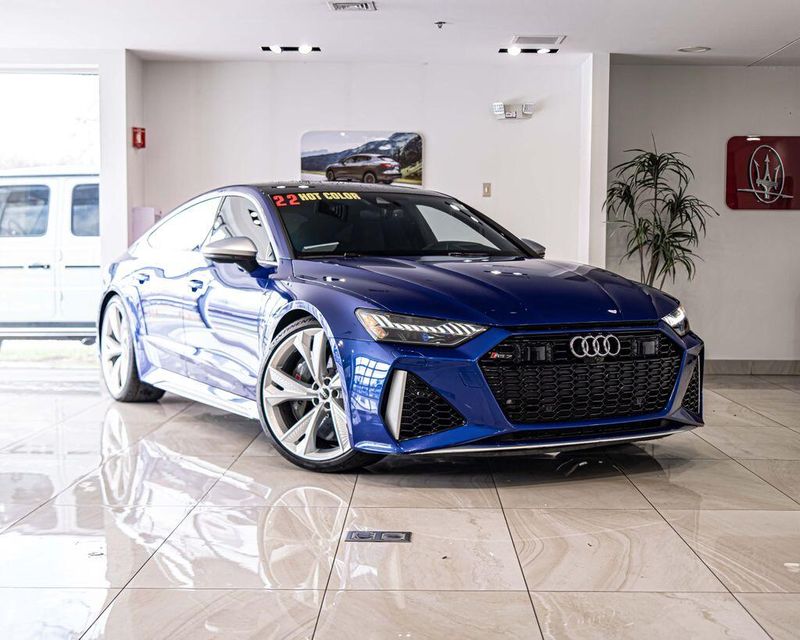 2022 Audi RS 7 4.0T quattro quattro 4.0L V8 Turbocharged DOHC 32V LEV3-ULEV125 591hp Blue Metallic Clean CARFAX, AWD, Navigation, Sunroof, Leather Seats, Heated Seats, Backup Camera, Memory Seats, Cooled Seats, Premium Sound System, Premium Audio, Multi-Zone Climate Control, Bluetooth, Hands-Free, USB Port, Adaptive Cruise Assist w/Lane Guidance, Alcantara Covered Steering Wheel, Audi Pre Sense Rear, Audi Side Assist w/Rear Cross Traffic Assist, Bang & Olufsen 3D Advanced Sound System, Black Dinamica Headliner, Black Optic Exterior Package, Black Optic Package, Ceramic Brakes w/Gray Calipers, Driver Assistance Package, Dynamic Ride Control Suspension, Extended Leather Package, Gray Contrast Stitching, Head-Up Display, Heated door mirrors, Heated front seats, Heated Rear Seats, Heated RS Sport Seats, Heated steering wheel, High-Gloss Black Exterior Mirror Housings, Intersection Assist, Leather Package, Navigation System, Navigation system: MMI Navigation plus, Power Soft-Closing Doors, RS 7 Executive Package, RS Design Package - Gray, RS Logo Floor Mats w/Gray Contrast Stitching, Seat Belts w/Gray Edging, Sport Exhaust, Traffic Sign Recognition, Wheels: 22'' 5-V-Spoke Structured Design Cast Alum.