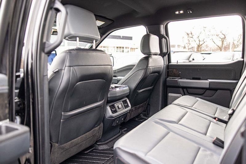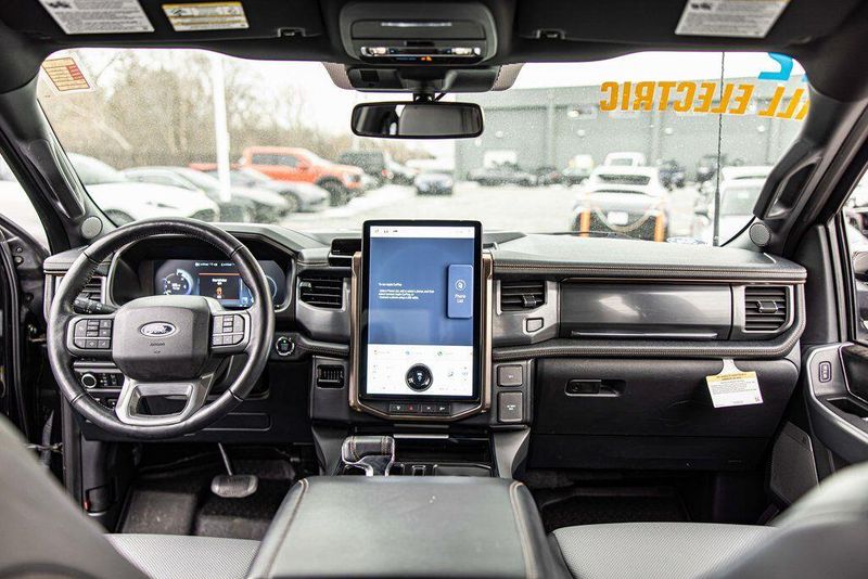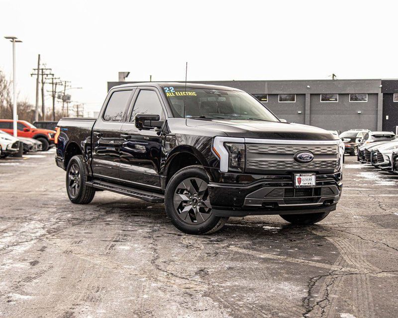 2022 Ford F-150 Lightning Lariat AWD Electric Motor Agate Black Metallic Clean CARFAX, AWD, Navigation, Sunroof, Leather Seats, Heated Seats, Backup Camera, Memory Seats, Active Park Assist 2.0, BlueCruise, Equipment Group 510A Standard, Ford Co-Pilot360 Active 2.0, Front Bucket Seats, Front Center Armrest, Heated front seats, Navigation System, Navigation system: Connected Navigation (3-year trial), Power passenger seat, Radio: B&O Sound System by Bang & Olufsen, Split folding rear seat, SYNC 4A w/Enhanced Voice Recognition, Ventilated front seats. 76/61 City/Highway MPG