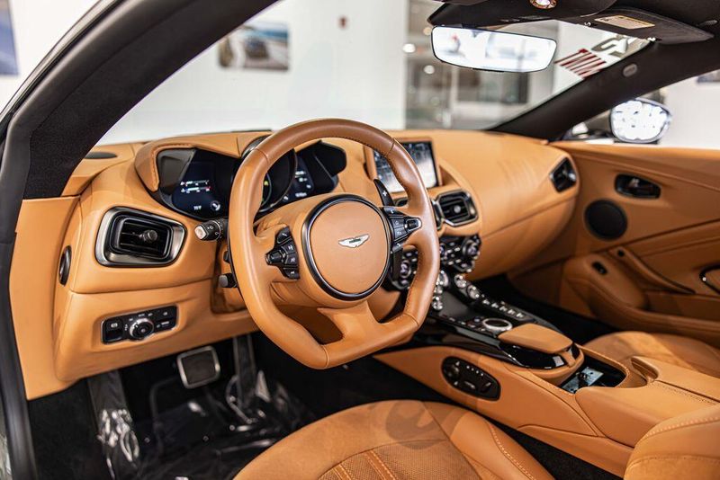 2023 Aston Martin Vantage RWD V8 Titanium Gray One Owner, Clean CARFAX, Navigation, Leather Seats, Heated Seats, Backup Camera, Memory Seats, Cooled Seats, Premium Sound System, Premium Audio, Multi-Zone Climate Control, Bluetooth, Hands-Free, USB Port, Portable Audio Connection, Apple CarPlay/Android Auto, Accelerate Environment - Monotone, Alcantara/Leather Seat Trim, Aston Martin Black Wings & Script Exterior Badging, Black Vanes Front Grille Style, Gloss Black Lower Exterior Pack, Gloss Black Trim Inlay, Navigation System, Radio: Aston Martin Premium Audio Infotainment, Red Painted Brake Calipers, Red Tail Lights, Satin Dark Chrome Interior Jewellery, Sport steering wheel, Sports Bucket Plus Front Seats, Ventilated Seats, Wheels: 21'' Satin Black Diamond Turned.