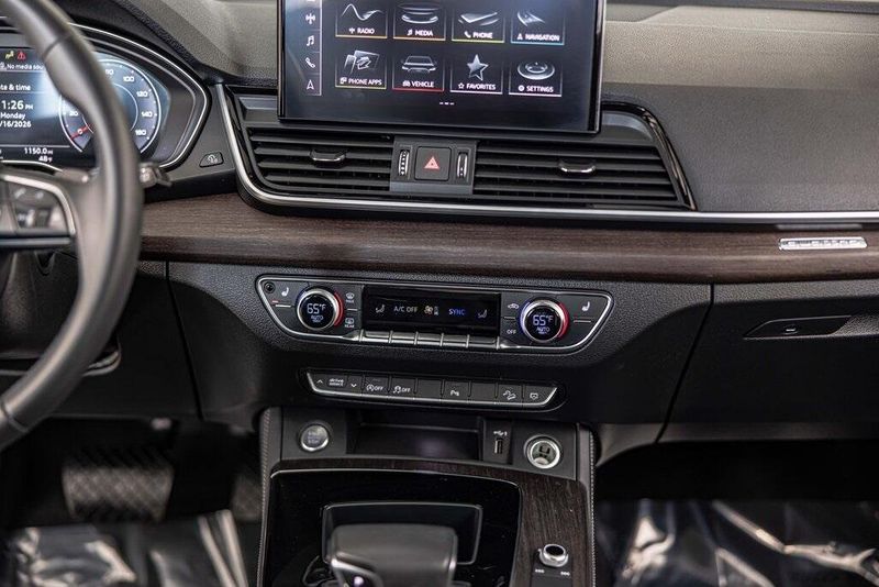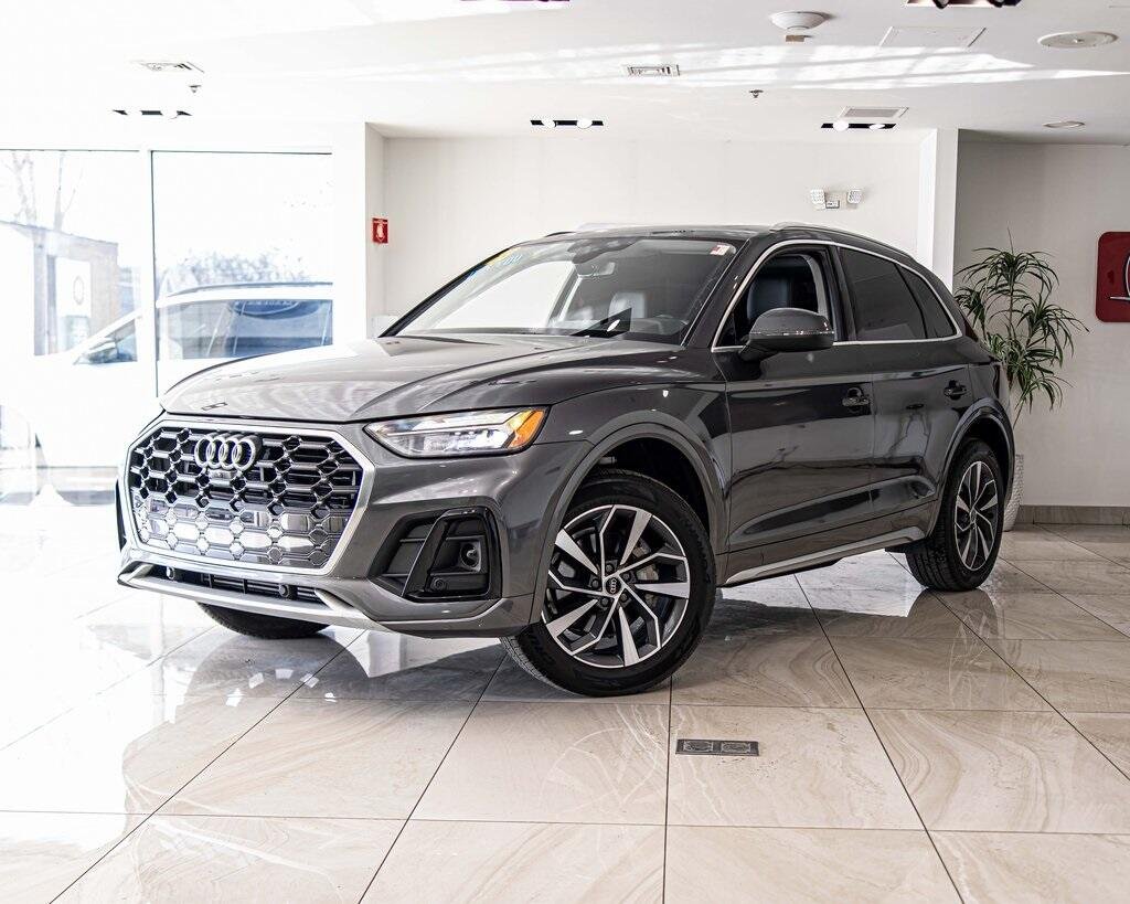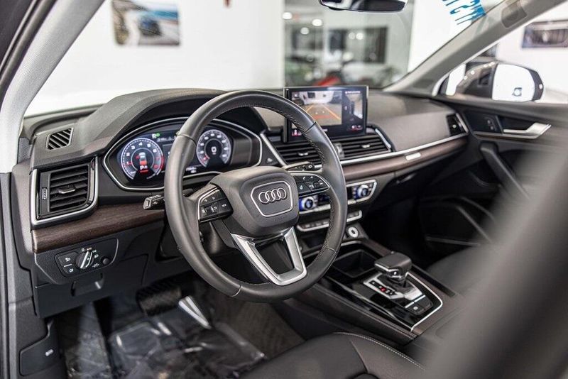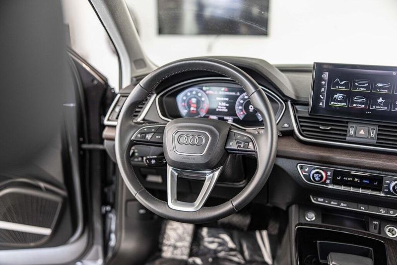 2023 Audi Q5 45 S line Premium quattro quattro 2.0L Turbocharged Daytona Gray Pearl Effect AWD, Navigation, Sunroof, Leather Seats, Heated Seats, Black w/Leather Seating Surfaces, Audi Advanced Key, Auto-Dimming Power Folding Exterior Mirrors, Bang & Olufsen Sound System w/3D Sound, Black Exterior Trim, Black Optic Package, Black Roof Rails, Convenience Package, Driver Seat Memory, Heated front seats, Heated Steering Wheel, Illuminated Front Audi Rings, Panoramic Sunroof, SiriusXM w/360L, Wheels: 20'' 5-Arm Cutter Design, Bi-Color Finish. Odometer is 17052 miles below market average! 22/29 City/Highway MPG