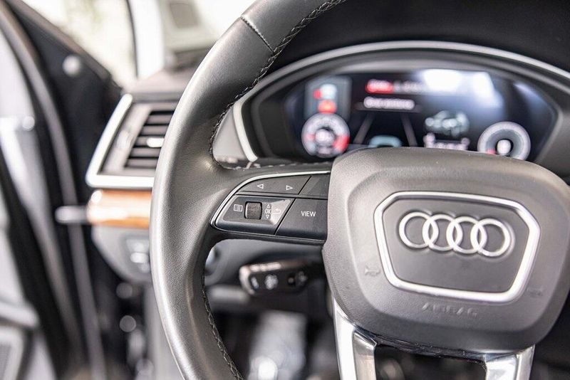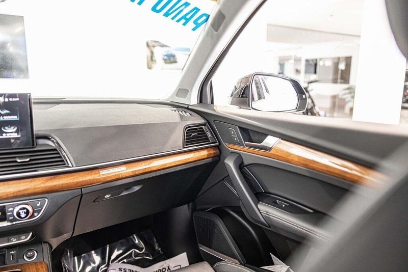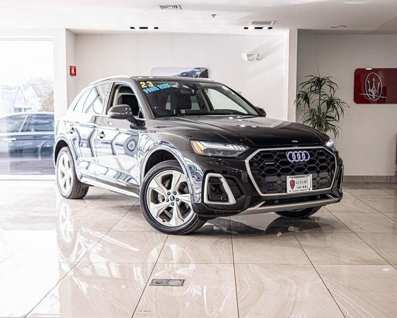 2023 Audi Q5 45 S line Prestige quattro quattro 2.0L Turbocharged Mythos Black Metallic One Owner, Clean CARFAX, AWD, Navigation, Sunroof, Leather Seats, Heated Seats, Backup Camera, Memory Seats, Premium Sound System, Black w/Leather Seating Surfaces, Audi Active Lane Assist, Audi Advanced Key, Audi Connect PLUS, Audi Phone Box, Audi Virtual Cockpit Plus, Auto-Dimming Power Folding Exterior Mirrors, Bang & Olufsen Sound System w/3D Sound, Convenience Package, Driver Seat Memory, Dual Pane Acoustic Glass for Front Side Windows, Hands-On Detection Steering Wheel, Head-Up Display, Heated & Cooled Front Cup Holder, Heated Rear Seats, Heated Steering Wheel, Leatherette Covered Center Console & Door Armrests, LED Interior Lighting Plus Package, Manual Rear Side Window Sunshades, Matrix-Design LED Headlights w/Headlight Washers, MMI Navigation Plus, Navigation Package, Navigation System, Panoramic Sunroof, Park Assist, Power Adjustable Steering Column, Prestige Package, SiriusXM w/360L, Top View Camera System, Traffic Jam Assist, Traffic Sign Recognition, Ventilated Front Sport Seats w/4-Way Power Lumbar, Warm Weather Package, Wheels: 19'' 5-Double-Arm Design Bi-Color Finish. 22/29 City/Highway MPG