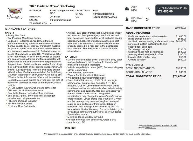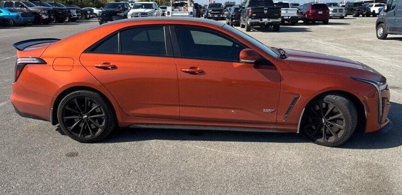 2023 Cadillac CT4 V-Series RWD 3.6L V6 Blaze Orange Metallic Clean CARFAX, Navigation, Leather Seats, Heated Seats, Backup Camera, Memory Seats, Cooled Seats, Premium Sound System, Premium Audio, Multi-Zone Climate Control, Bluetooth, Hands-Free, USB Port, Portable Audio Connection, Apple CarPlay/Android Auto, Steering Wheel Controls, 3.73 Axle Ratio, Air Ionizer, AKG Premium Surround Sound 15-Speaker System, Automatic Emergency Braking, Climate Package, Driver Power Lumbar Massage Seat, Electronic Cruise Control w/Set & Resume Speed, Front Passenger Power Lumbar Massage Seat, HD Radio, Head-Up Display, Heated Driver & Front Passenger Seats, Heated Steering Wheel, LED Reflective Windshield Collision Alert, Navigation System, Preferred Equipment Group 1SP, Radio: Cadillac User Experience w/Embedded Nav, SiriusXM w/360L, Sport steering wheel, Sueded Microfiber Wrapped Interior Trim Package, Technology Package, Ventilated Driver & Front Passenger Seats, Wireless Apple CarPlay/Wireless Android Auto. Recent Arrival! Odometer is 2412 miles below market average!