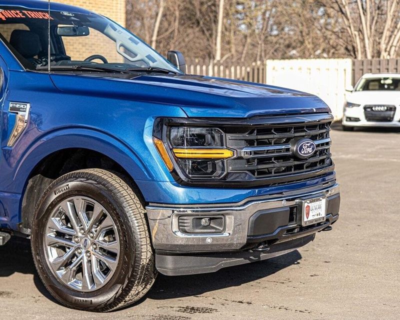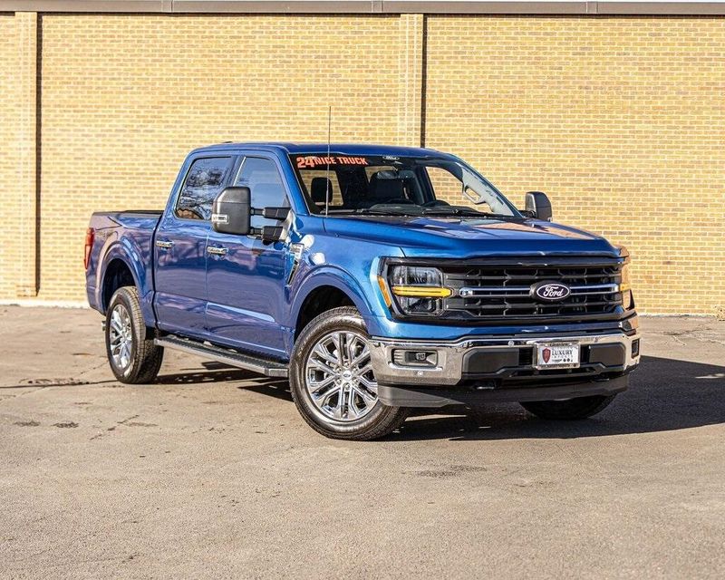 2024 Ford F-150 XLT 4WD 3.5L V6 EcoBoost Atlas Blue Metallic One Owner, Clean CARFAX, AWD, Navigation, Sunroof, Leather Seats, Heated Seats, Backup Camera, Memory Seats, Cooled Seats, Premium Sound System, Premium Audio, Multi-Zone Climate Control, Bluetooth, Hands-Free, USB Port, Portable Audio Connection, Apple CarPlay/Android Auto, Steering Wheel Controls, CD Player, Remote Start, Keyless Entry, 4WD, 400W Cab & Bed Outlets, 4x4 FX4 Off-Road Bodyside Decal, Adaptive Cruise Control w/Stop & Go, Auto-Dimming Rear-View Mirror, Brake assist, Cloth 40/Console/40 Front Seats, Console Worksurface, Electronic Stability Control, Equipment Group 303A High, Ford BlueCruise Equipped (90-Day Trial), FX4 Off-Road Package, Heated Front Seats, Hill Descent Control, Intelligent Access w/Push Button Start, Mobile Office Package, Monotube Rear Shocks, Navigation System, Navigation system: Connected Navigation, Off-Road Tuned Front Shock Absorbers, Partitioned Lockable Rear Storage, Power Glass Heated Sideview Mirrors, Power-Adjustable Pedals, Power-Sliding Rear Window, Radio: B&O Sound System by Bang & Olufsen, Remote Start System w/Remote Tailgate Release, Rock Crawl Mode, Speed control, Speed Sign Recognition, Tough Bed Spray-In Bedliner, Tray Style Floor Liner, Twin Panel Moonroof, Wheels: 20'' Chrome-Like PVD. Recent Arrival! Odometer is 29604 miles below market average!