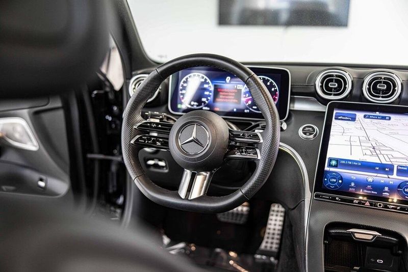 2024 Mercedes-Benz C-Class C 300 4MATIC 4MATIC 2.0L I4 Turbocharged Black One Owner, Clean CARFAX, AWD, Navigation, Sunroof, Leather Seats, Heated Seats, 4MATIC, AMG Body Styling, AMG Line Exterior, AMG Line w/Night Package, MB-Tex Dashboard, Navigation System, Night Package, Perforated Brake Discs, Sport Suspension w/Sport Steering System, Star Grille. Odometer is 10454 miles below market average! 23/33 City/Highway MPG