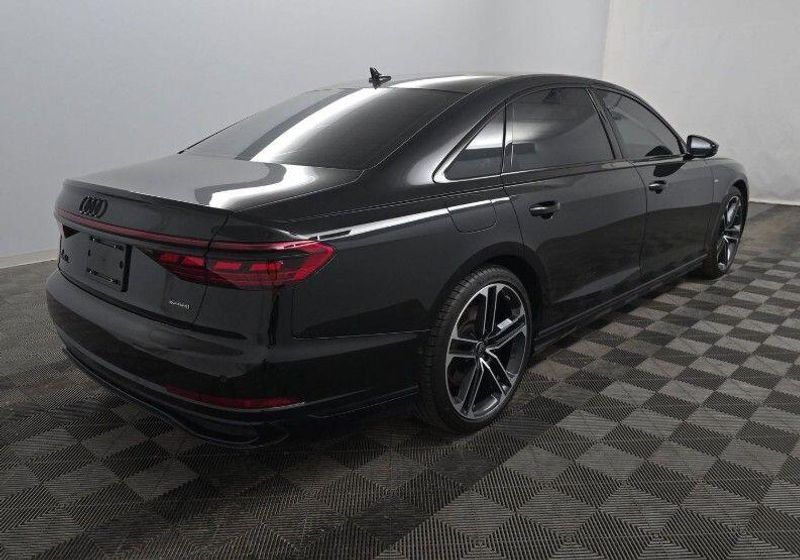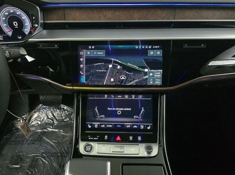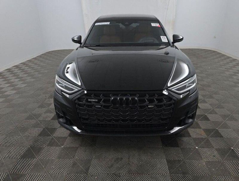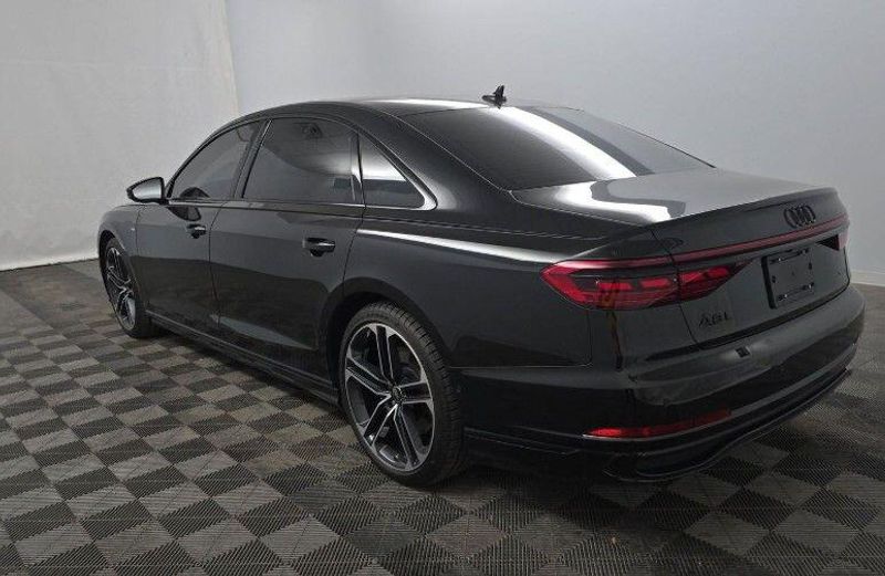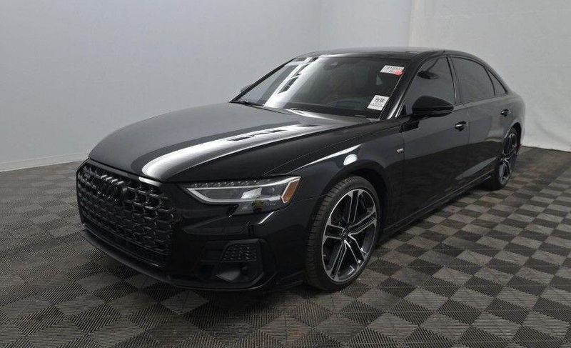 2025 Audi A8 L 55 quattro quattro 3.0L V6 Turbocharged DOHC 24V LEV3-ULEV70 335hp Mythos Black Metallic One Owner, Clean CARFAX, AWD, Navigation, Sunroof, Leather Seats, Heated Seats, Backup Camera, Memory Seats, Cooled Seats, Premium Sound System, Premium Audio, Multi-Zone Climate Control, Cognac Brown w/Valcona Leather Seat Upholstery, Adaptive Cruise Assist with Lane Guidance, Alu-Optic Buttons, Audi Side Assist with Pre Sense Rear, Black Brake Calipers, Black Exterior Trim, Black Optic Package, Dual-Pane Acoustic Glass For Side Windows, Dynamic All-Wheel-Steering, Executive Package, Extended Leather Package, Front Seat Massage Function, HD Matrix-Design LED Headlights, Head-Up Display, Headlight Washers, Heated Front Seat Armrests, Heated Rear Seats, Intersection Assist, LED Interior Lighting Plus Package, Luxury Package, Navigation System, Navigation system: MMI Navigation plus, Remote Park Assist Plus, Valcona Leather Seat Upholstery, Wheels: 21'' 5-Double-Spoke-Star S Design. Recent Arrival! 20/26 City/Highway MPG