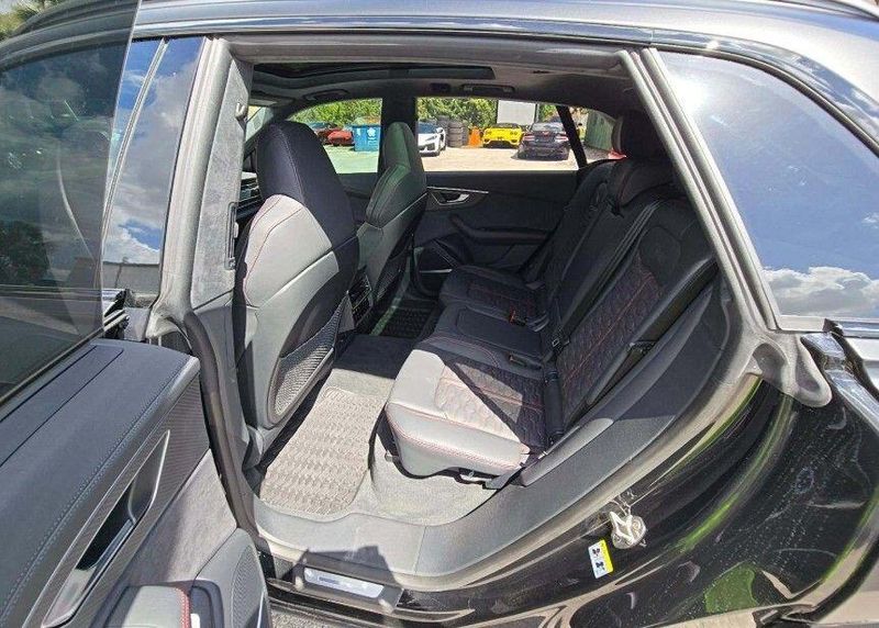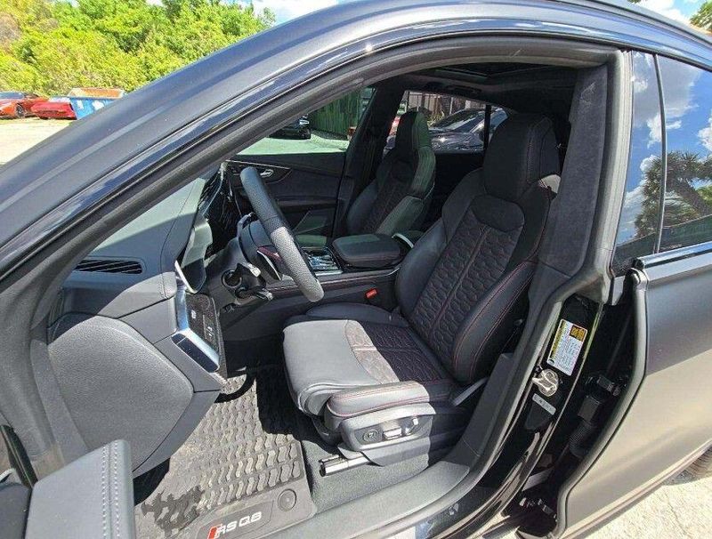 2025 Audi RS Q8 performance 4.0T quattro quattro 4.0L V8 Turbocharged DOHC 32V LEV3-ULEV125 631hp Black One Owner, Clean CARFAX, AWD, Navigation, Sunroof, Leather Seats, Heated Seats, Backup Camera, Memory Seats, Cooled Seats, Premium Sound System, Premium Audio, Multi-Zone Climate Control, Bluetooth, Hands-Free, USB Port, Portable Audio Connection, Black Dinamica Headliner, Black Exterior Trim, Ceramic Brakes with Red Calipers, Dual-Pane Acoustic Glass For Side Windows, Executive Package, Head-Up Display, Heated and Ventilated Sports Seats Plus, Heated Rear Seats, Intersection Assist, Luxury Package, Massage Function For Front Seats, Matte Carbon Inlay Between Taillights, Matte Carbon Mask and Front Bumper Inlays, Matte Carbon Mirror Housings, Matte Carbon Package, Matte Carbon Trim Around Exhaust Tips, Navigation System, Navigation system: Audi MMI Navigation plus with Touch Response, Power Soft-Closing Doors, Remote Park Assist Plus, Ventilated front seats, Wheels: 23'' 5-Y-Spoke Design Matte Black Finish. Recent Arrival! Odometer is 3617 miles below market average!