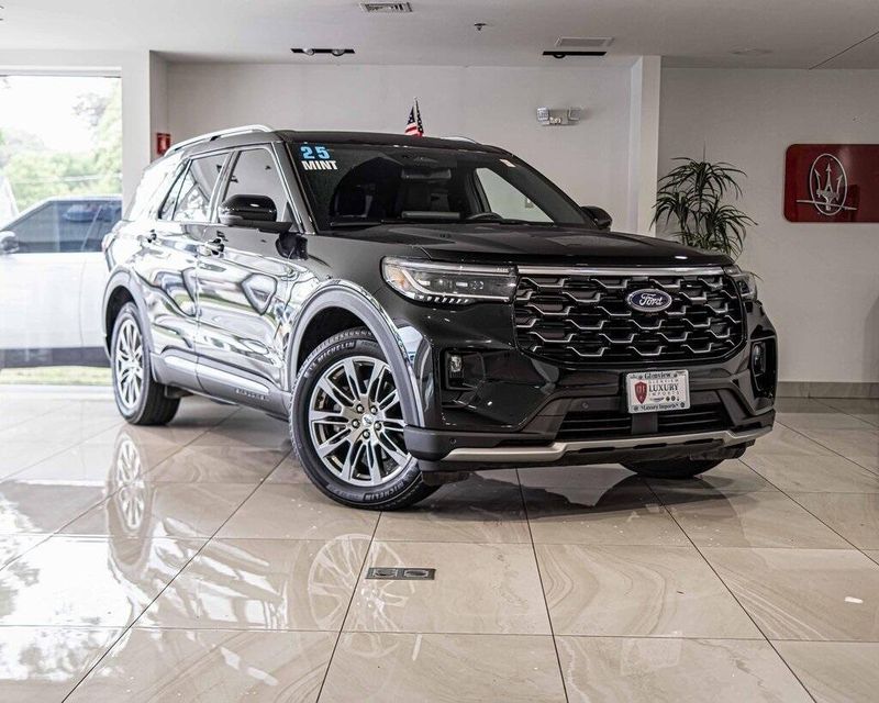 2025 Ford Explorer Platinum 4WD 2.3L EcoBoost I-4 Black Clean CARFAX, AWD, 4WD. Priced below KBB Fair Purchase Price! Odometer is 3292 miles below market average! 20/27 City/Highway MPG