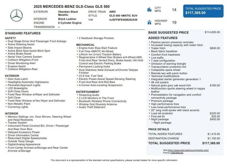 2025 Mercedes-Benz GLS 580 4MATIC 4MATIC 4.0L V8 Obsidian Black Metallic One Owner, Clean CARFAX, AWD, Navigation, Sunroof, Leather Seats, Heated Seats, Backup Camera, Memory Seats, Premium Sound System, 13 Speakers, AM/FM radio: SiriusXM, Black Microfiber Headliner, Burmester Surround Sound System, Dark Chrome Grille w/4 Slats, Head restraints memory, Heated front seats, Heated rear seats, High-Gloss Black Elements, Leather Upholstery, Matte Black Roof Rails, Memory seat, Navigation system: MB Navigation, Night Package, Power driver seat, Power steering, Power windows, Premium audio system: MBUX, Radio: MBUX Multimedia System, Remote keyless entry, Steering wheel memory, Weather band radio, Wheels: 22'' AMG Multi-Spoke w/Black Accents.